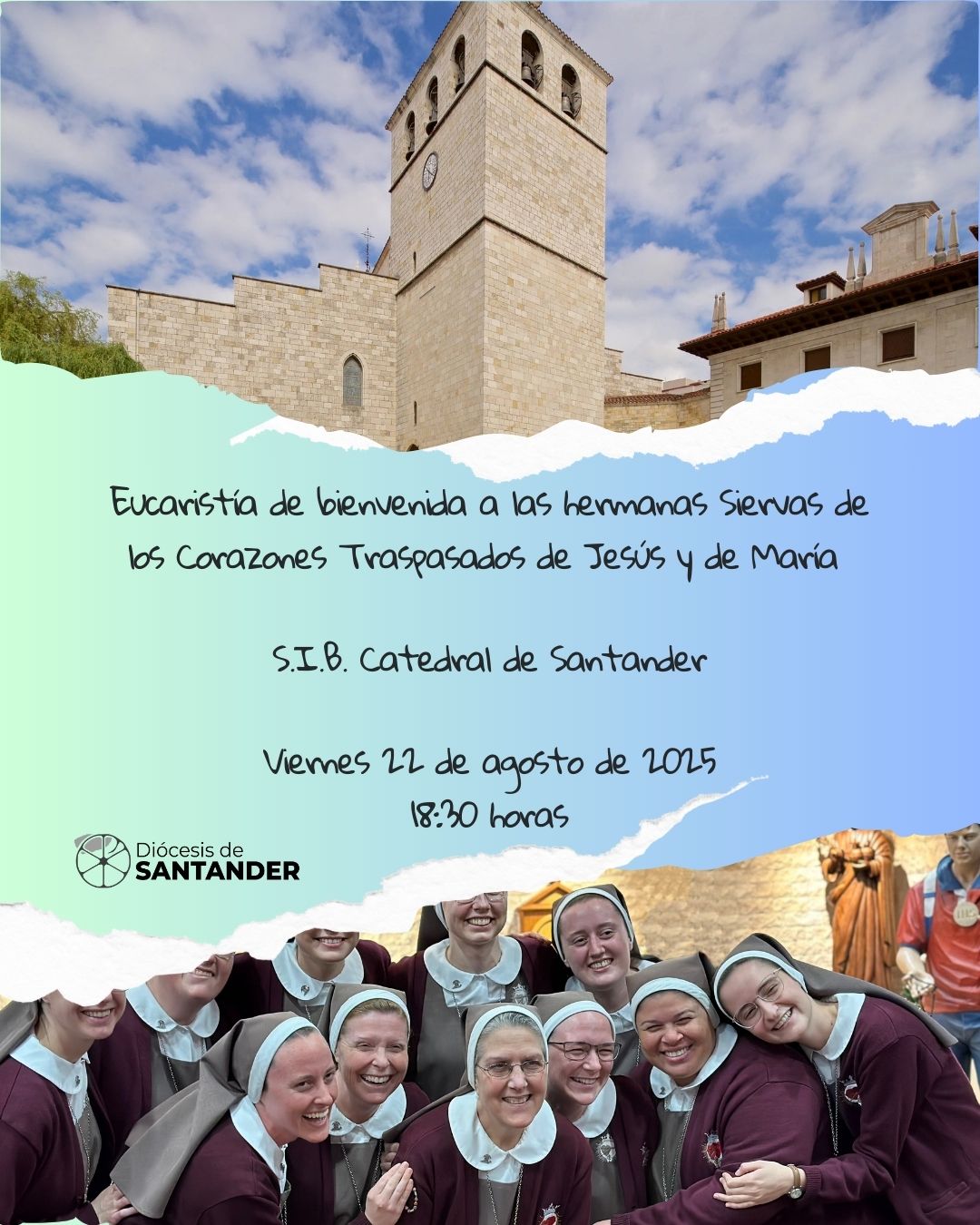 Eucaristía de bienvenida de las hermanas Siervas de los Corazones Traspasados de Jesús y de María Fecha Ago 22 2025 Finalizado Hora 18:30 Localización Catedral de Santander C. Somorrostro, s/n, 39002 Santander, Cantabria Compartir este evento