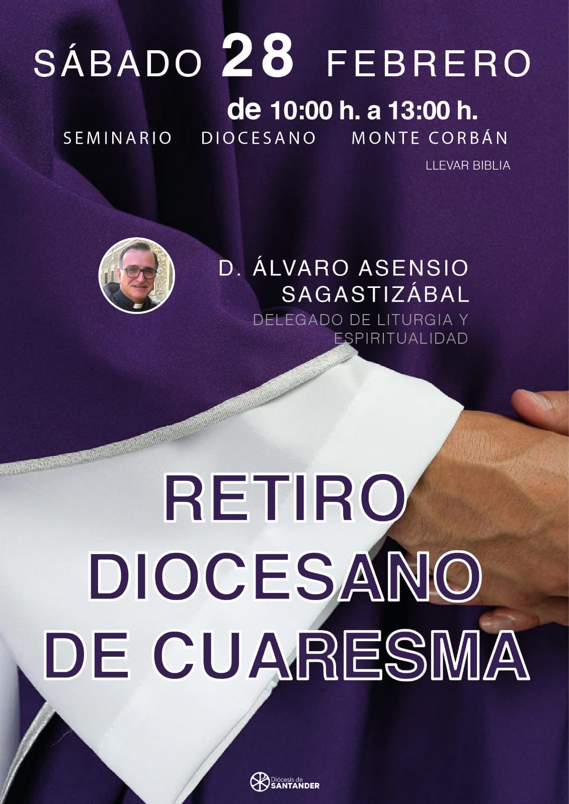 Retiro diocesano de Cuaresma + Añadir Google Calendar Exportación + iCal / Outlook 00 días 00 horas 00 minutos 00 segundos Fecha Feb 28 2026 Hora 10:00 - 13:00 Localización Seminario de Monte Corbán Santander Compartir este evento
