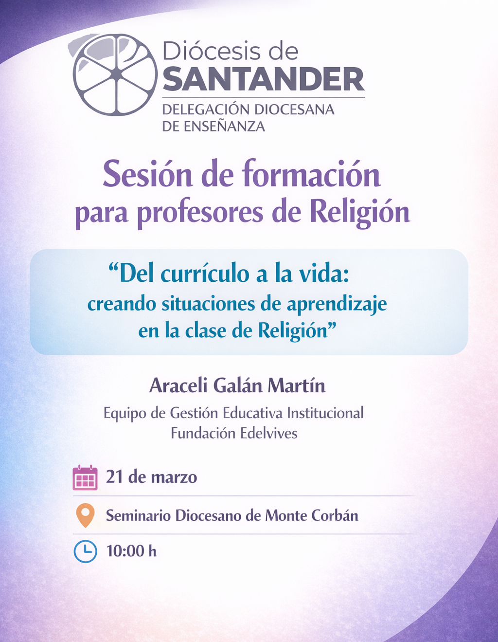 Sesión de formación para profesores de Religión + Añadir Google Calendar Exportación + iCal / Outlook 00 días 00 horas 00 minutos 00 segundos Fecha Mar 21 2026 Hora 10:00 Localización Seminario de Monte Corbán Santander Compartir este evento