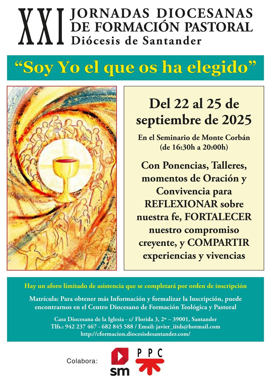 XXI Jornadas Diocesanas de Formación Pastoral Fecha Sep 22 - 25 2025 Finalizado Hora Evento de todo el día Localización Seminario de Monte Corbán Santander Compartir este evento