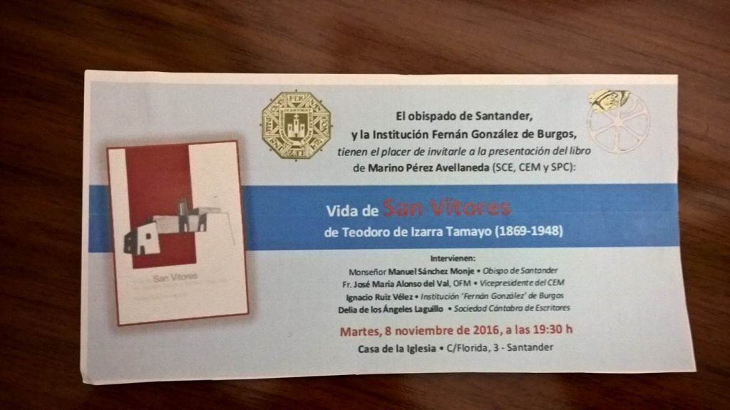 [vc_row][vc_column][vc_column_text] El próximo martes 8 de noviembre, a las 19:30 en el Salón de Actos de la Casa de la Iglesia; situado en la calle Florida 3, donde se encuentra la Librería de nuestra diócesis, la Librería de Pastoral, tendrá lugar la presentación del libro Vida de San Vitores de Teodoro de Izarra Tamayo (1869 […]