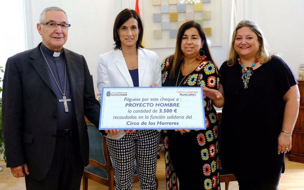 Esta mañana la alcaldesa de Santander, Gema Igual, ha entregado un donativo de 3.500 euros al Proyecto Hombre, que fueron recaudados en la función solidaria del Circo de los Horrores. Recogieron el donativo, Mons. Manuel Sánchez Monge como presidente y Eloisa Velarde, como directora de la fundación Proyecto Hombre..