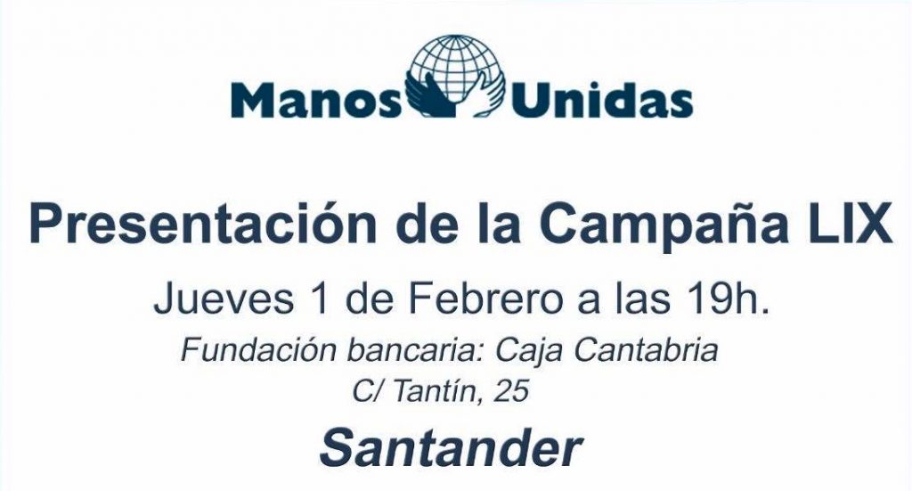 Este jueves 1 de febrero, PRESENTACION 59 CAMPAÑA MANOS UNIDAS EN CAJA CANTABRIA