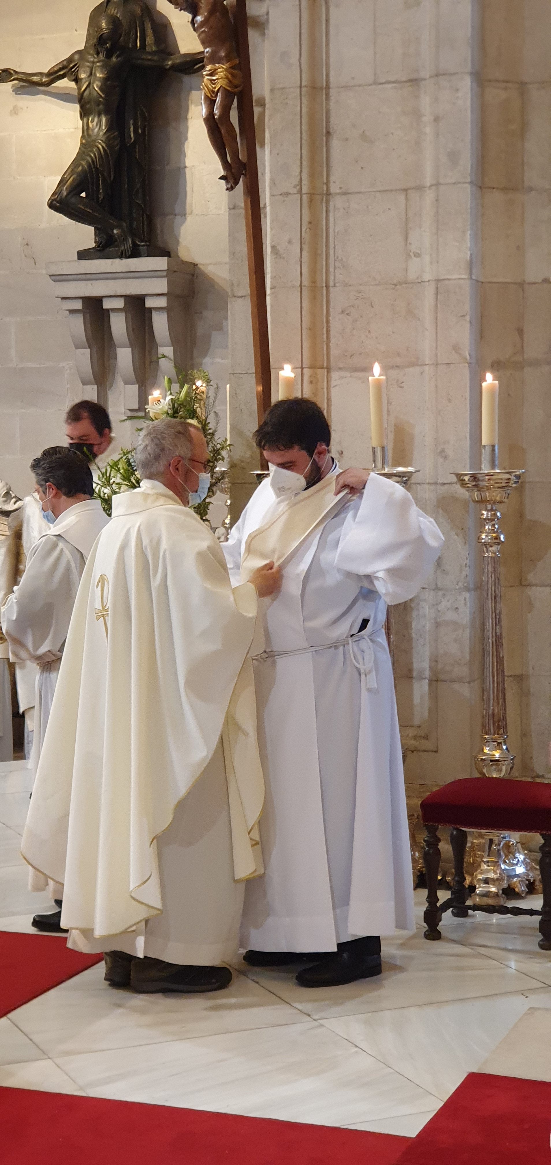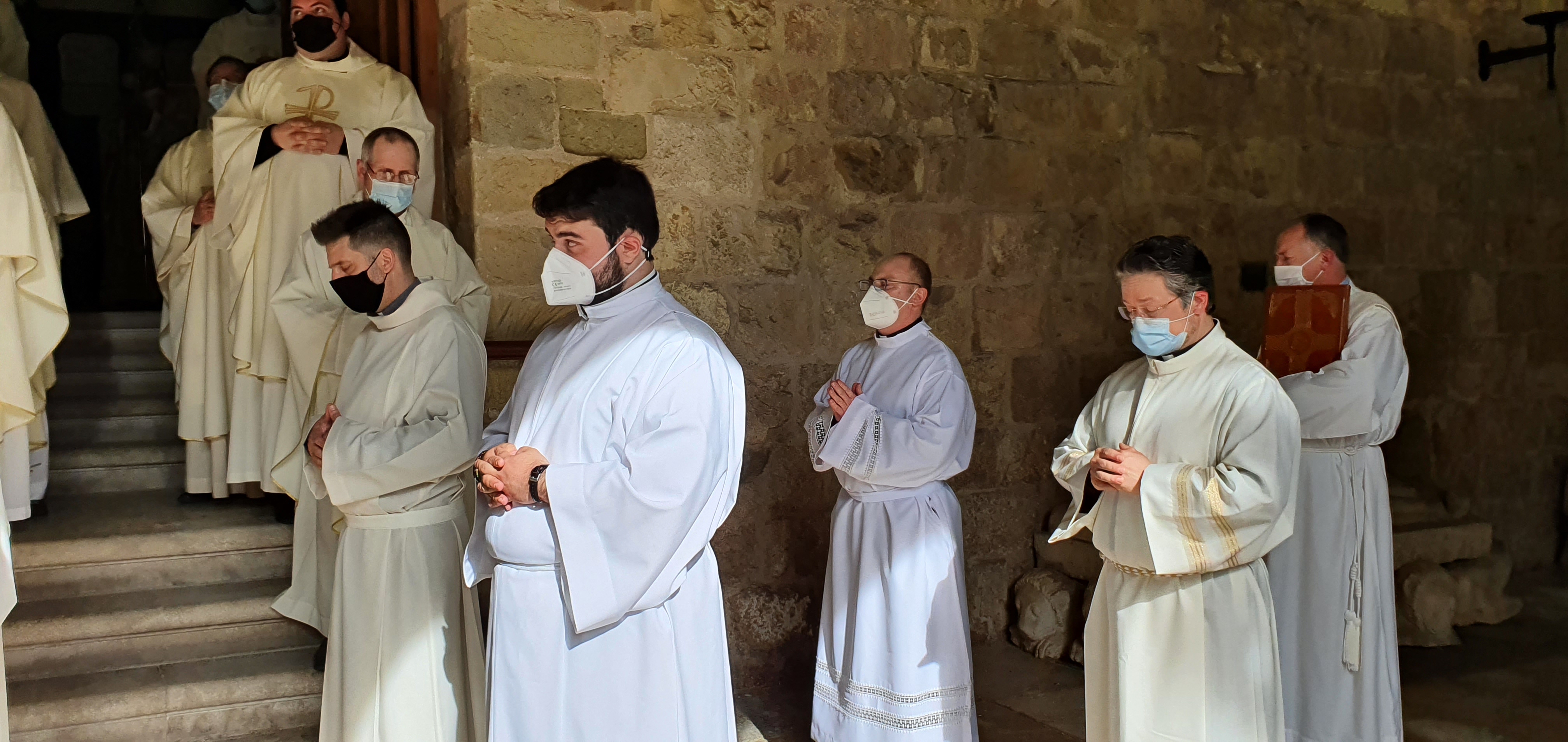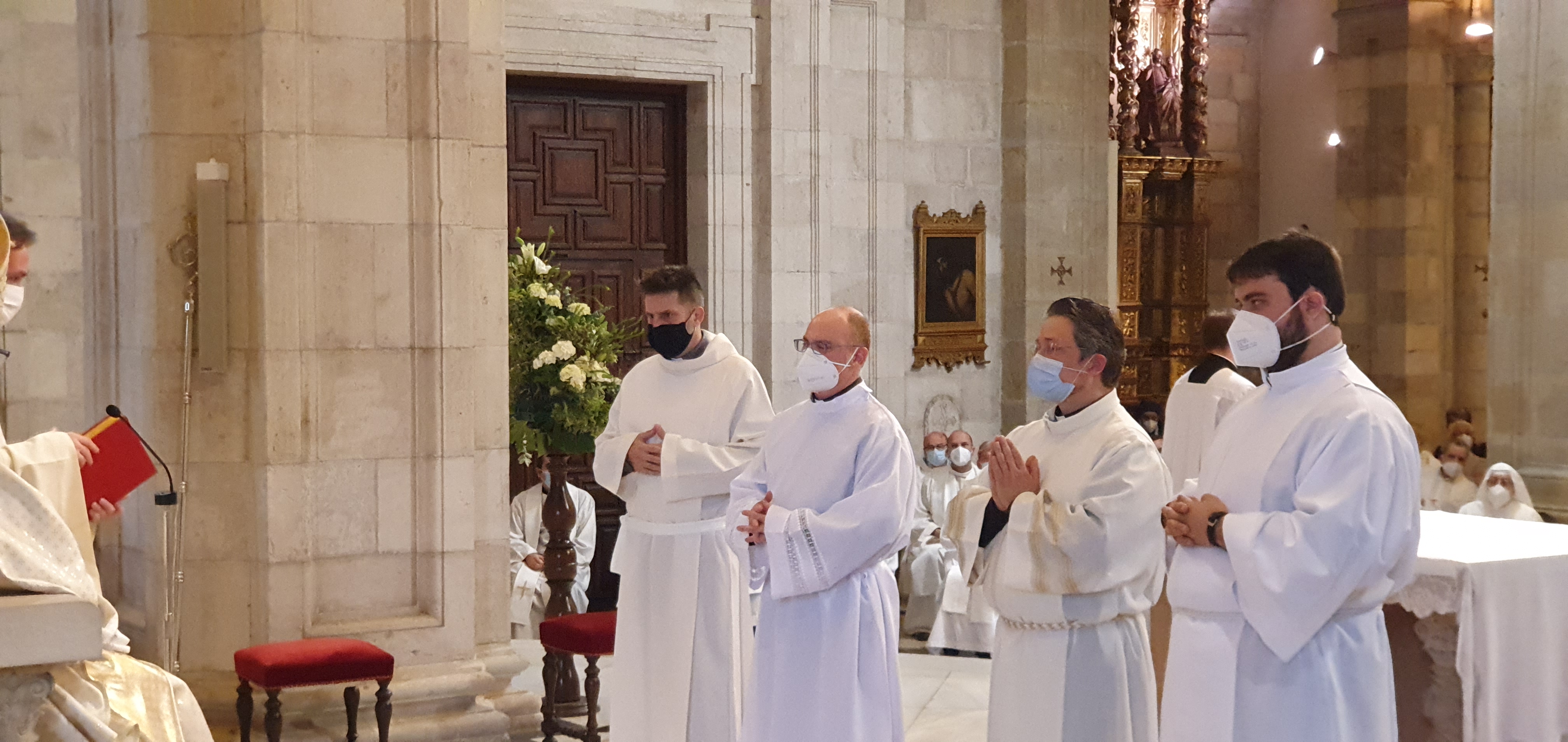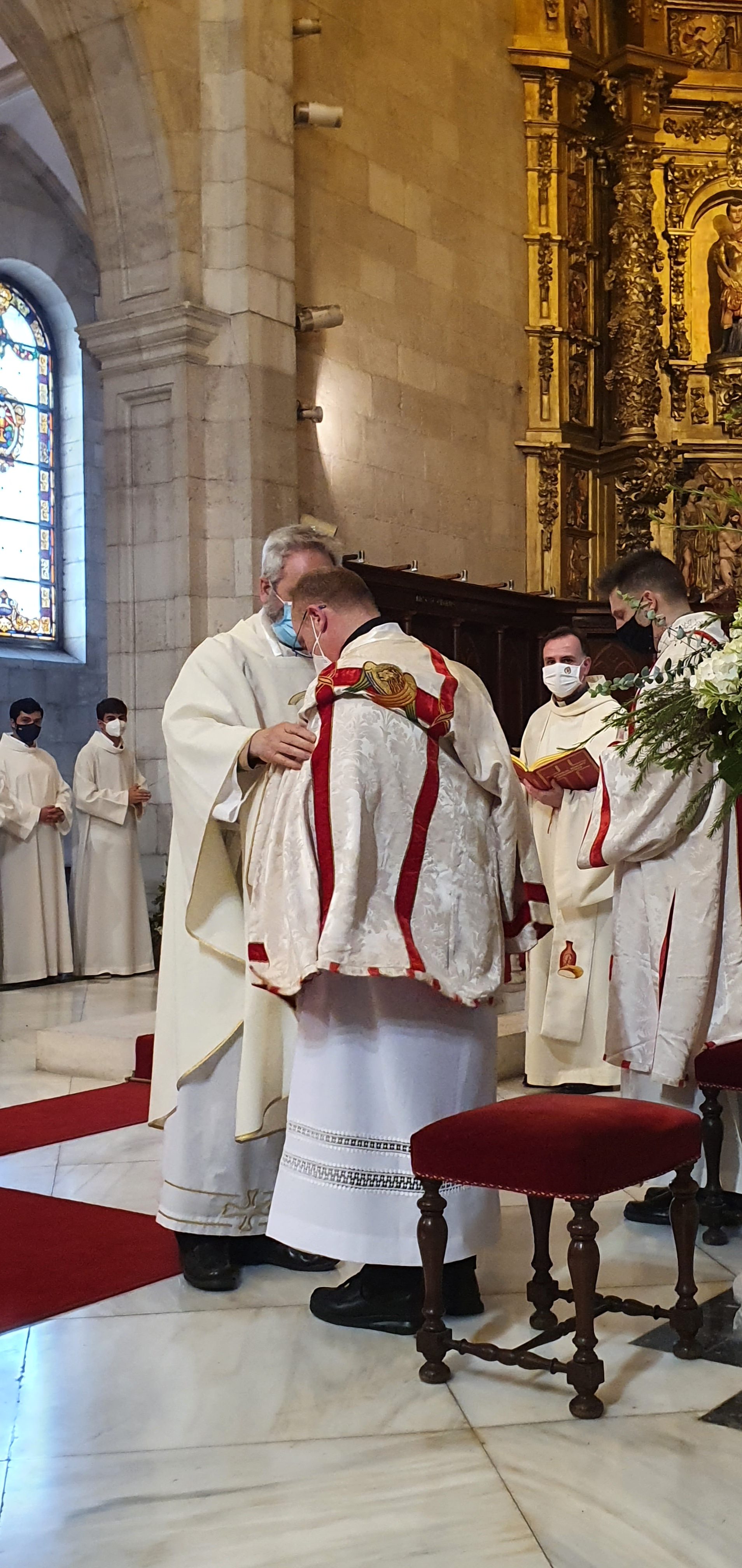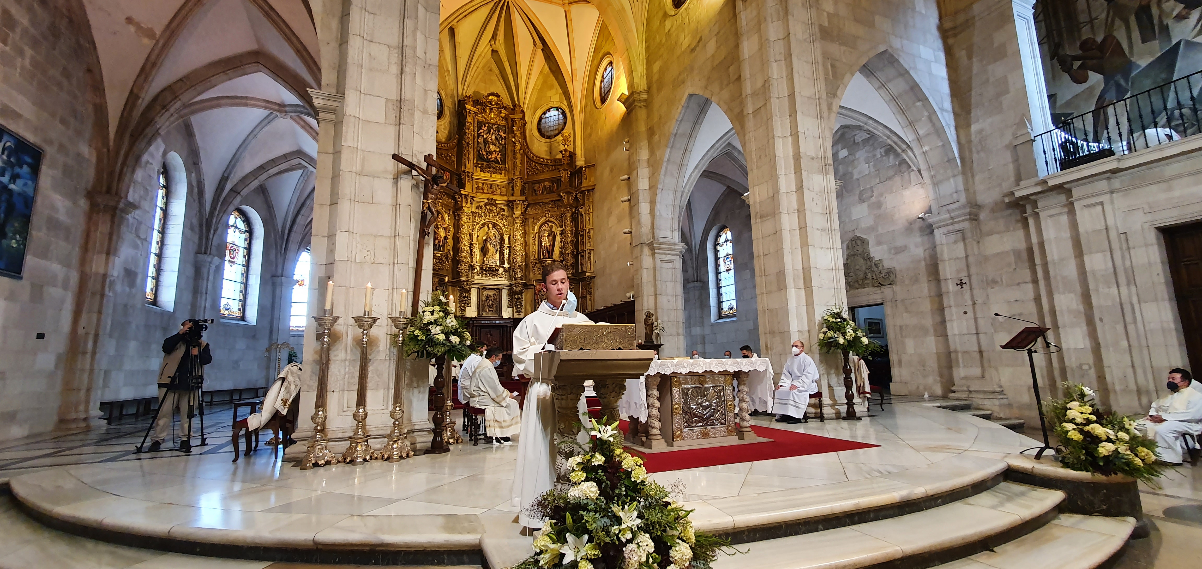Jueves, 27 de mayo del 2021. Hoy a las 6 y media de la tarde, comenzaba con la procesión la ordenación diaconal de 4 nuevos diáconos. Los seminaristas de último curso Ramón Gómez Ruiz (24 años, Maliaño), Paulino Mier Suarez (45 años, Torrelavega) Raúl Clemente García (48 años, Arnuero) y otro de los ordenados ha sido Luis M. Eguiguren Garrido (50 años, Castro Urdiales) que de ellos es quien recibe el diaconado de modo permanente, no como sus compañeros que lo serán hasta que sean ordenados sacerdotes en los próximos meses.