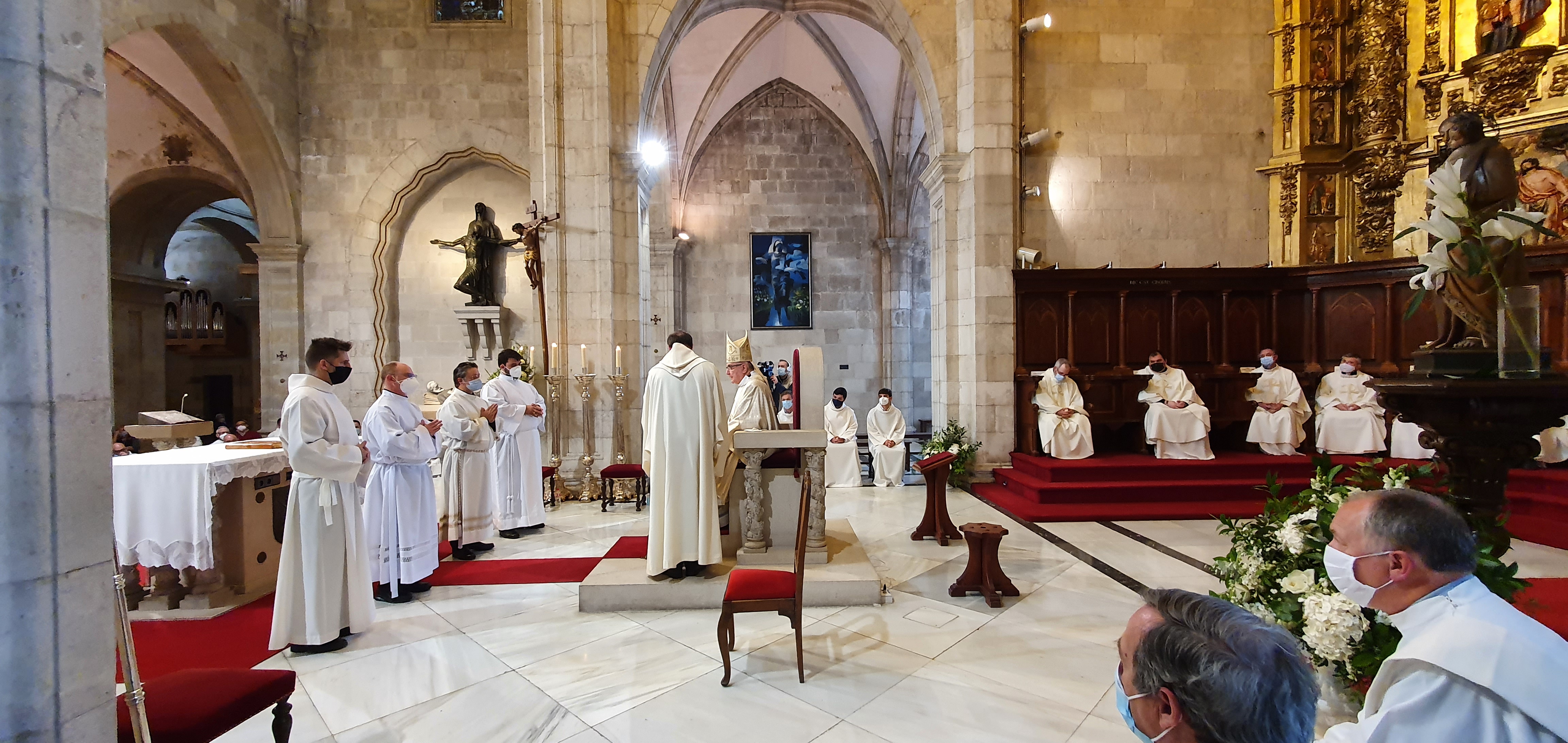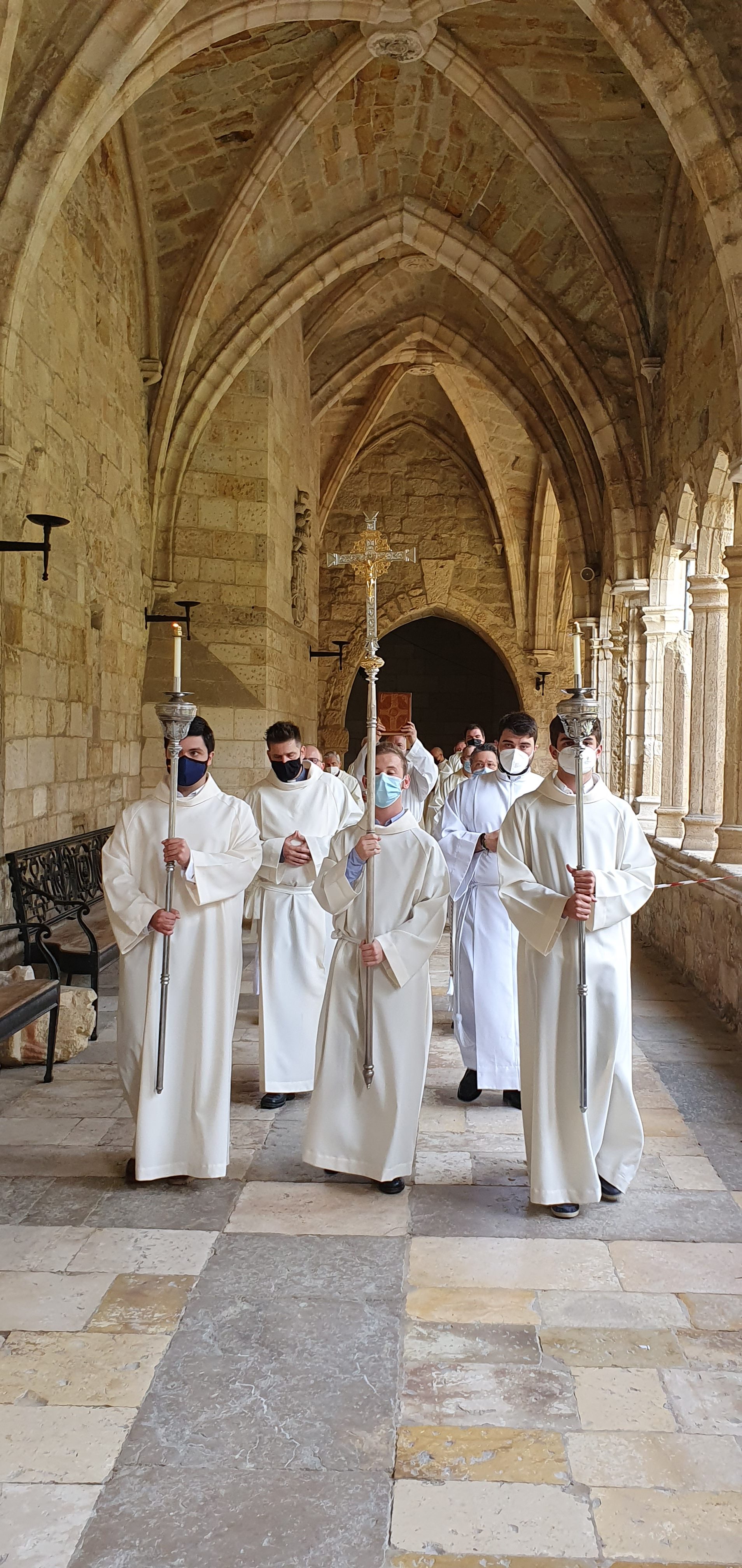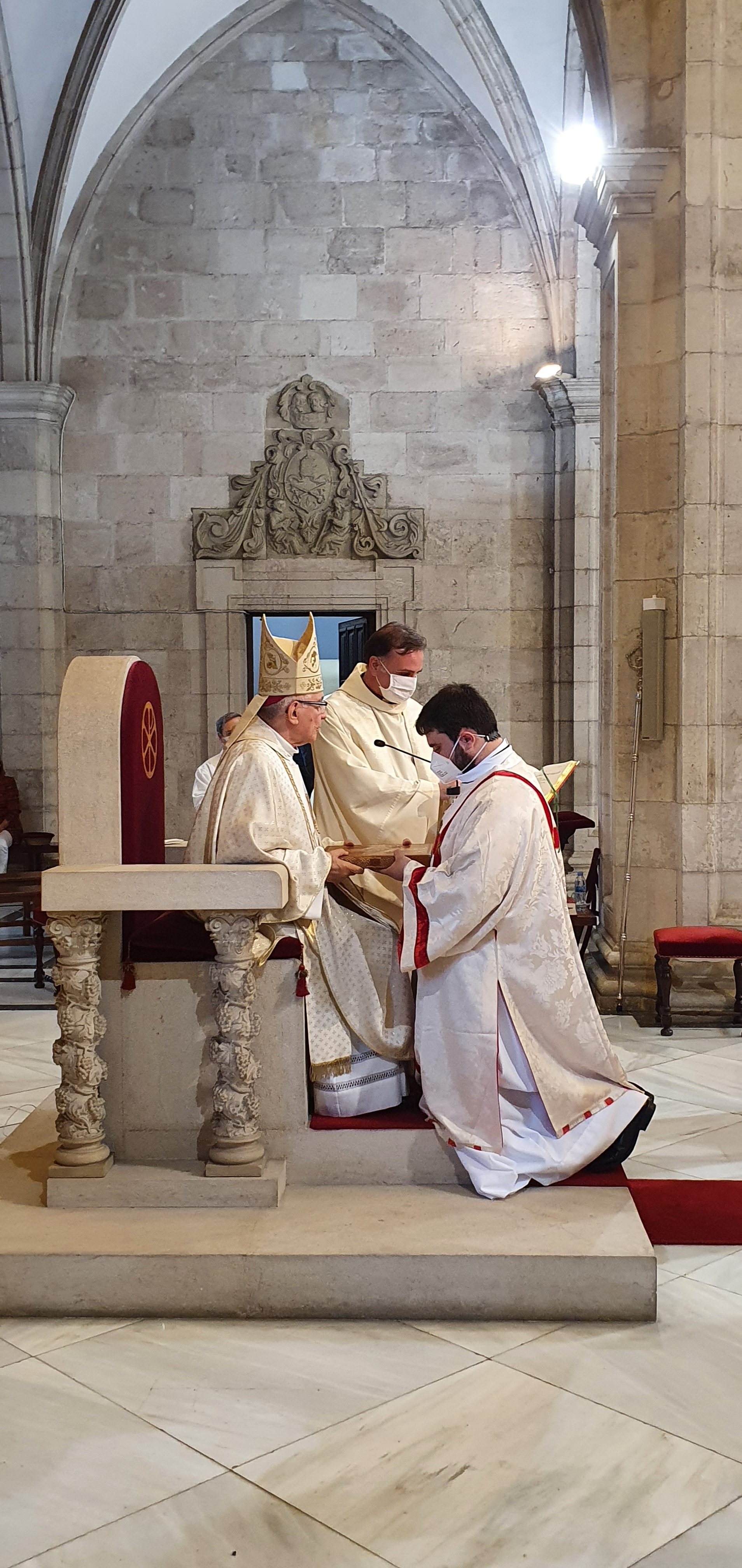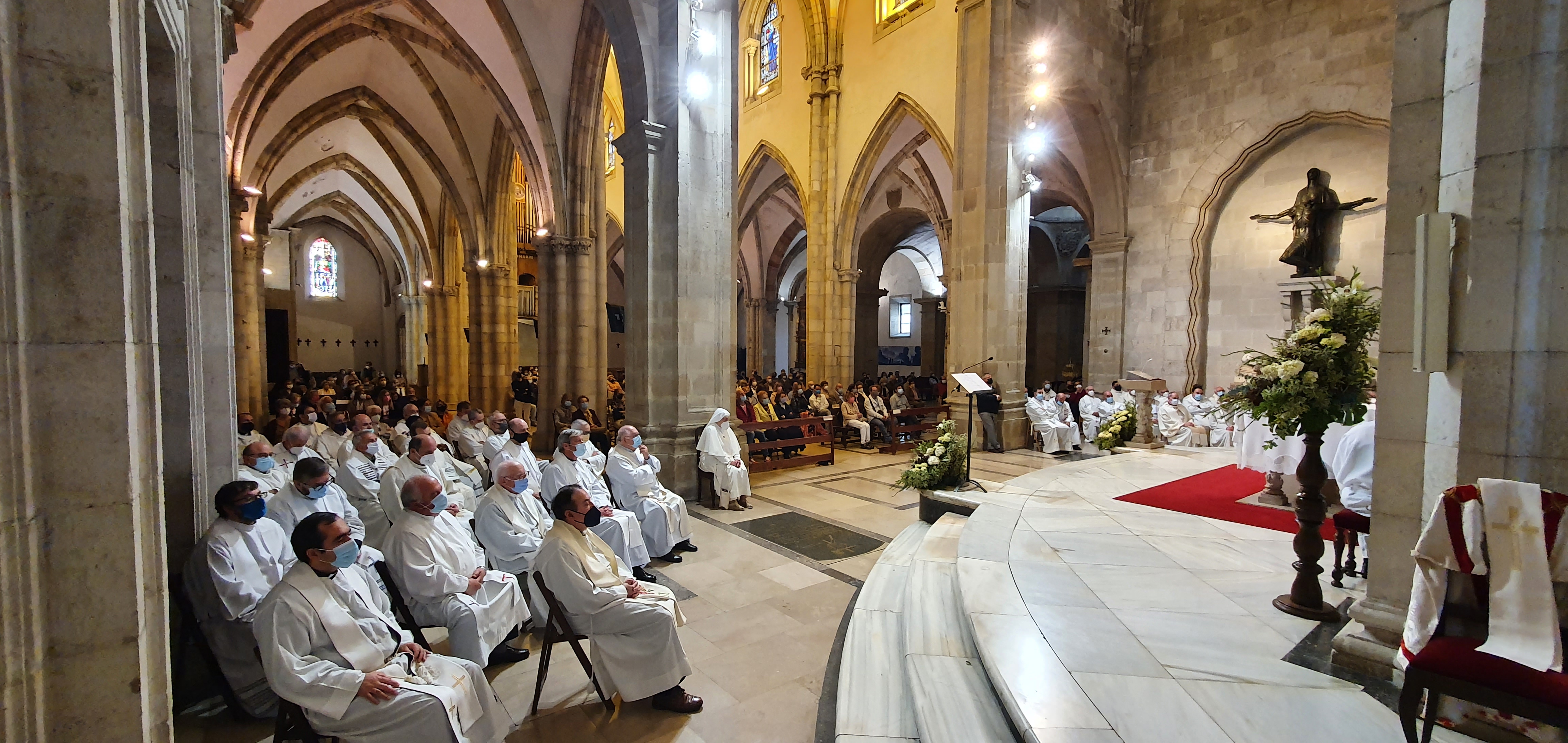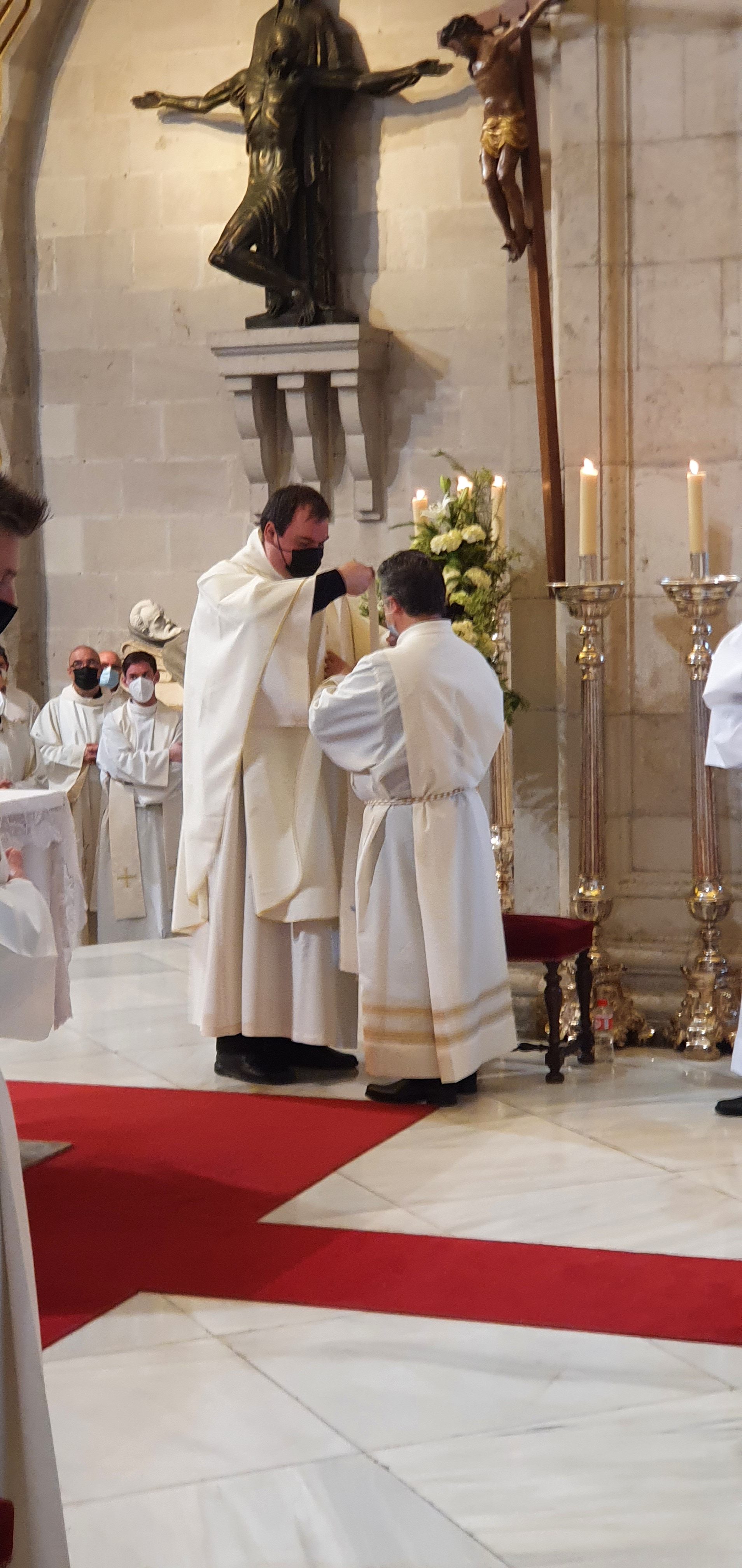 Jueves, 27 de mayo del 2021. Hoy a las 6 y media de la tarde, comenzaba con la procesión la ordenación diaconal de 4 nuevos diáconos. Los seminaristas de último curso Ramón Gómez Ruiz (24 años, Maliaño), Paulino Mier Suarez (45 años, Torrelavega) Raúl Clemente García (48 años, Arnuero) y otro de los ordenados ha sido Luis M. Eguiguren Garrido (50 años, Castro Urdiales) que de ellos es quien recibe el diaconado de modo permanente, no como sus compañeros que lo serán hasta que sean ordenados sacerdotes en los próximos meses.