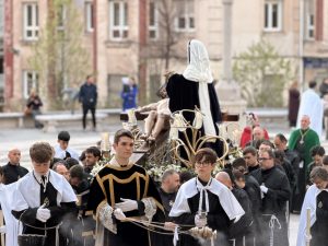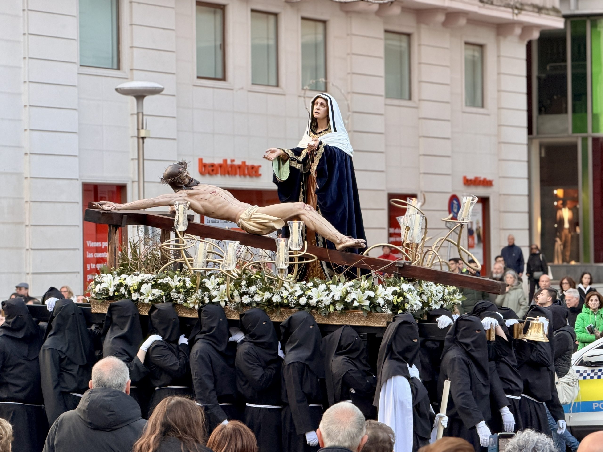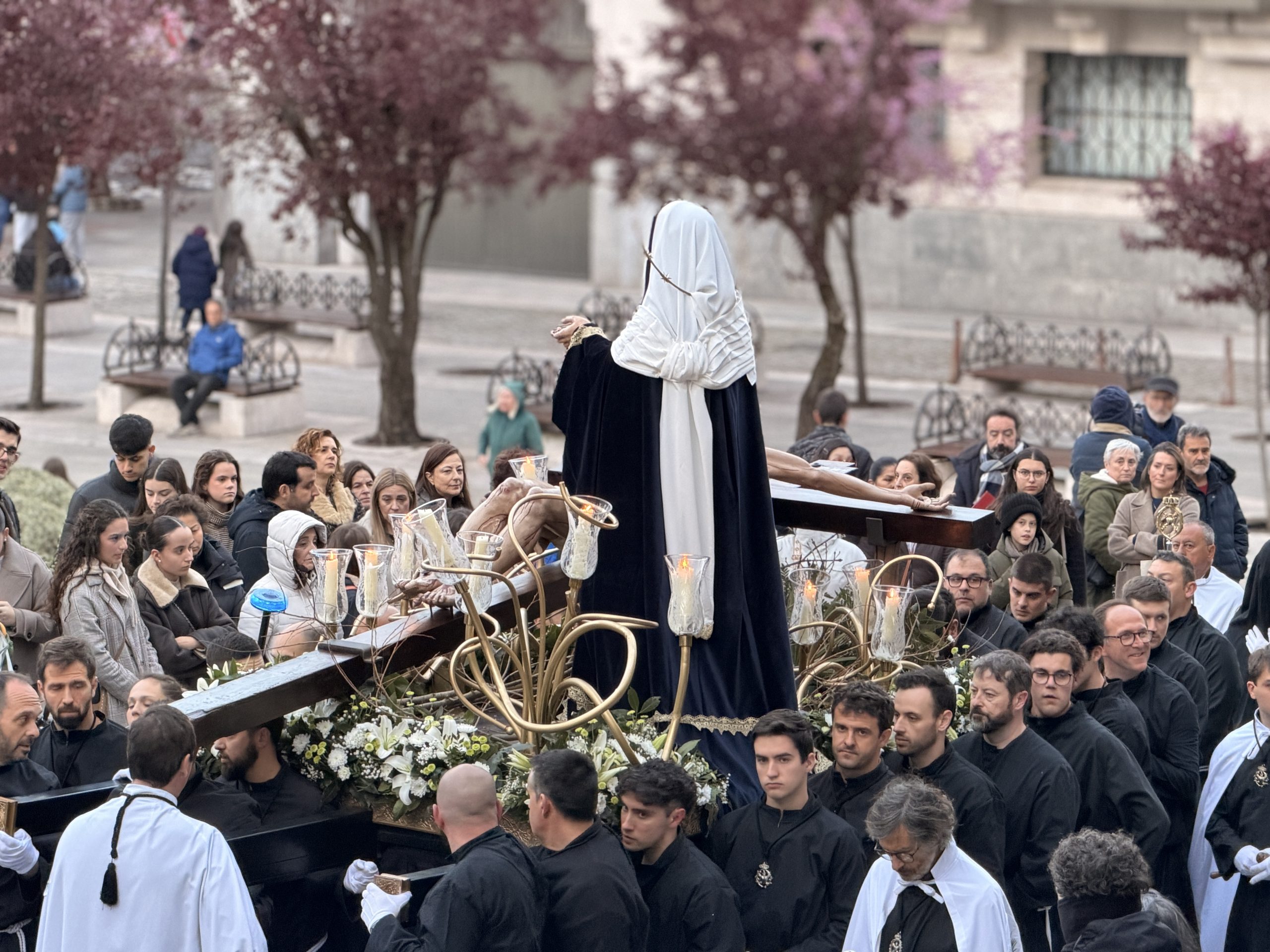 Una vez finalizada la oración penitencial, las hermandades han procesionado de regreso a la carpa de exposición de pasos ubicada en la Plaza Porticada, pasando por Somorrostro, Alfonso VIII y Calvo Sotelo.