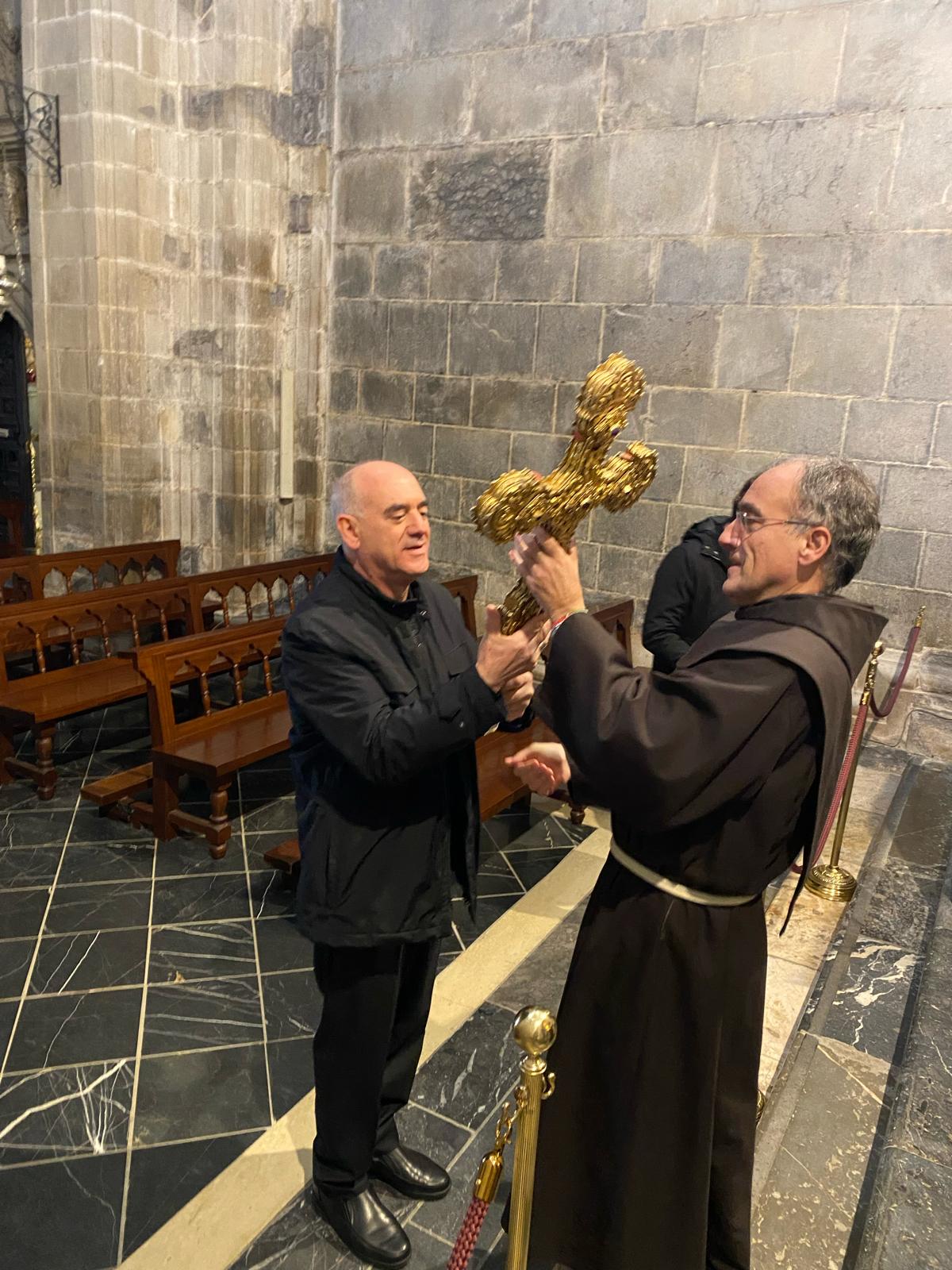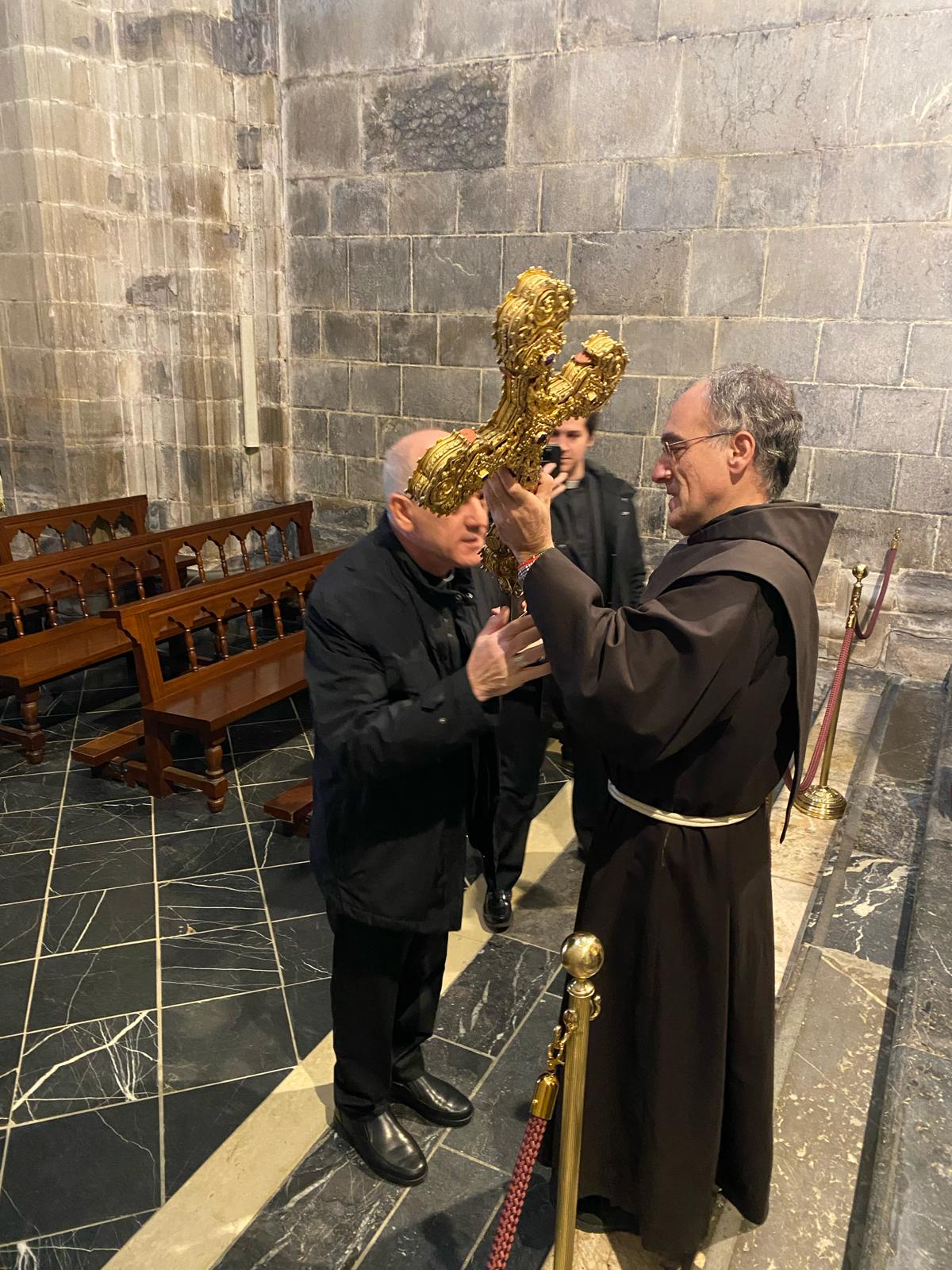 En primer lugar, llegó al monasterio de Sto. Toribio donde fue recibido por la comunidad de PP. Franciscanos, veneró el Lignum Crucis y después de visitar el santuario, mantuvo una reunión de trabajo con el P. Guardián, el Arcipreste de Liébana y la gerente de la Fundación Camino Lebaniego.