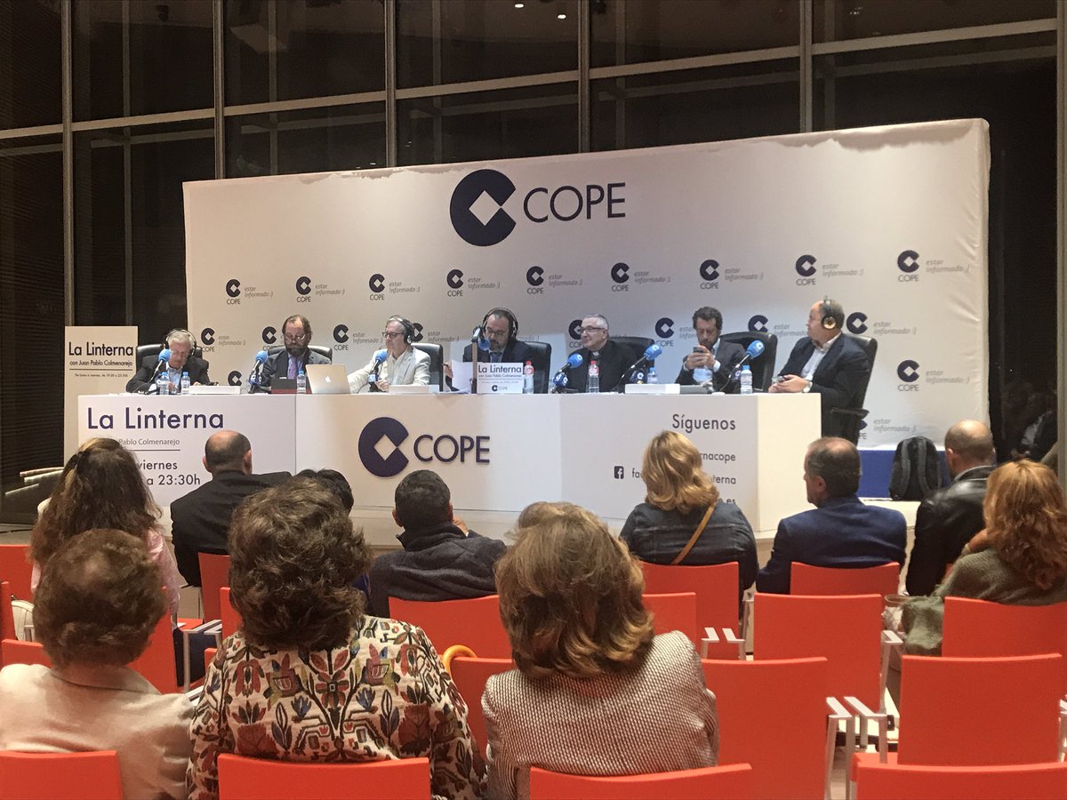 Tertulia al completo con Don Manuel Sánchez Monge, Obispo de Santander y Valle de Mena @cope_es @JPColmenarejo #30añosLaLinterna pic.twitter.com/rtJe4ixfmO