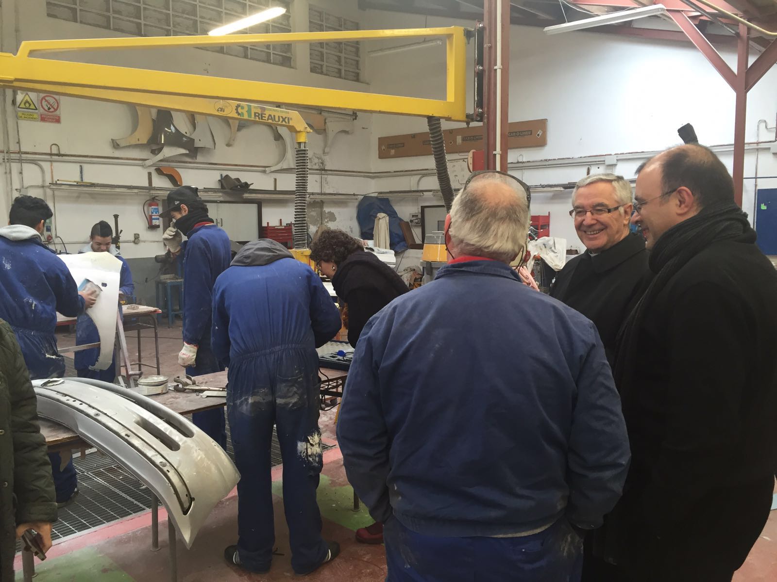El pasado viernes 19 de Febrero nuestro obispo visitó los talleres juveniles BRUMAS, recorrió las instalaciones, se interesó por el trabajo de los chavales y compartió con ellos un pequeño desayuno.