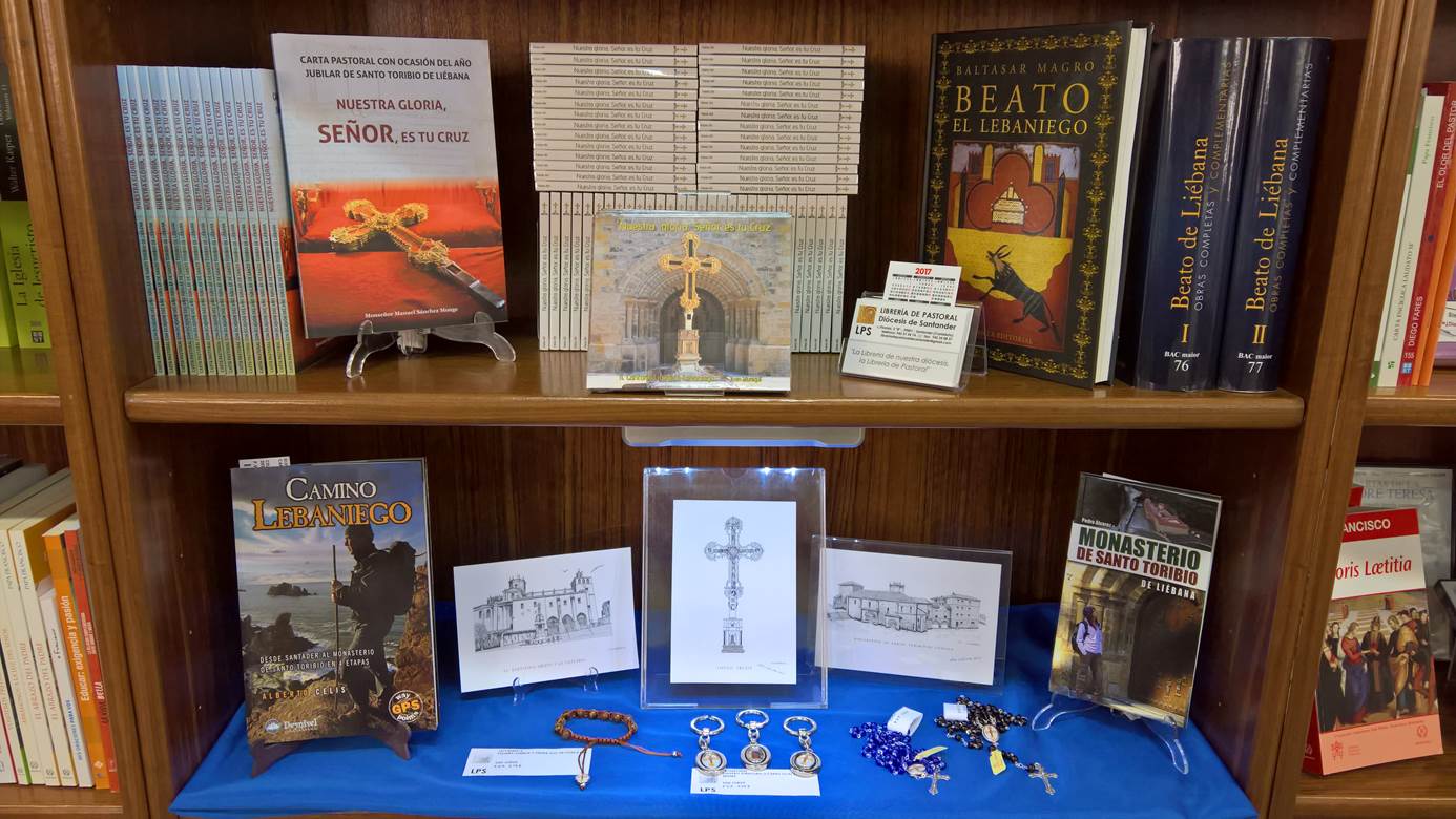 También contamos con existencias renovables de rosarios alusivos a la Santa Cruz de Liébana, el rosario “del peregrino”, pulseras con dijes decorativos, llaveros de doble cara con el Lignum Crucis y la Puerta del Perdón.