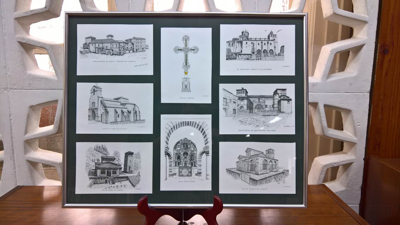 De su colección de estampas y láminas con dibujos a plumilla -basados en fotos obtenidas por el propio dibujante- destacan templos, iglesias y ermitas emblemáticas de la diócesis: tales como la Colegiata de Santillana del Mar, la iglesia de Santa María de Lebeña, la S. I. Basílica Catedral de Santander…