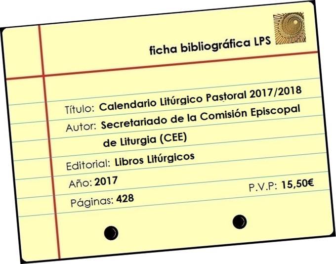 Mientras esperamos la llegada del Leccionario I-B por parte de la editorial Libros Litúrgicos (de La Conferencia Episcopal Española, ya contamos en la librería de nuestra diócesis, la Librería de Pastoral con el Calendario Litúrgico Pastoral 2017/2018: que abarca desde Adviento de 2017 al 31 de diciembre de 2018.