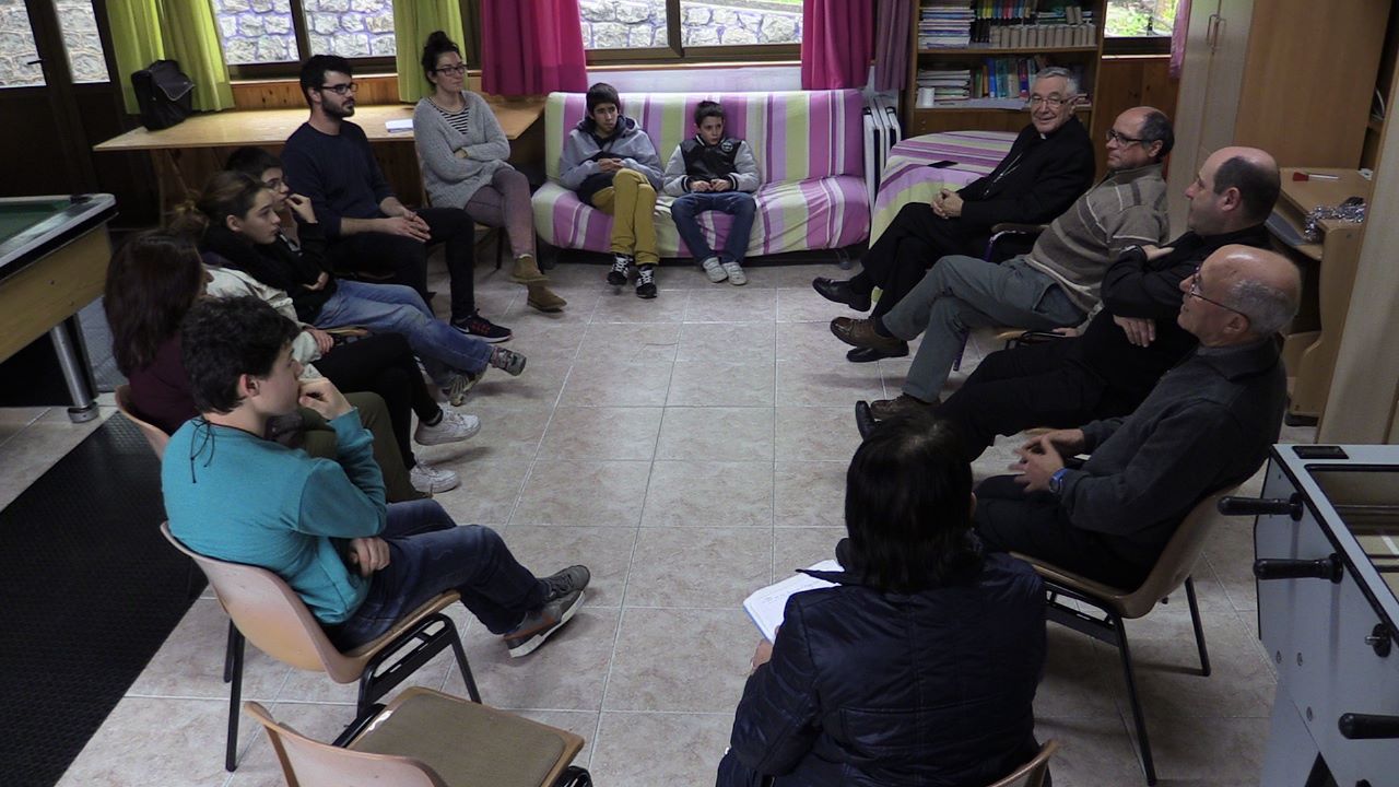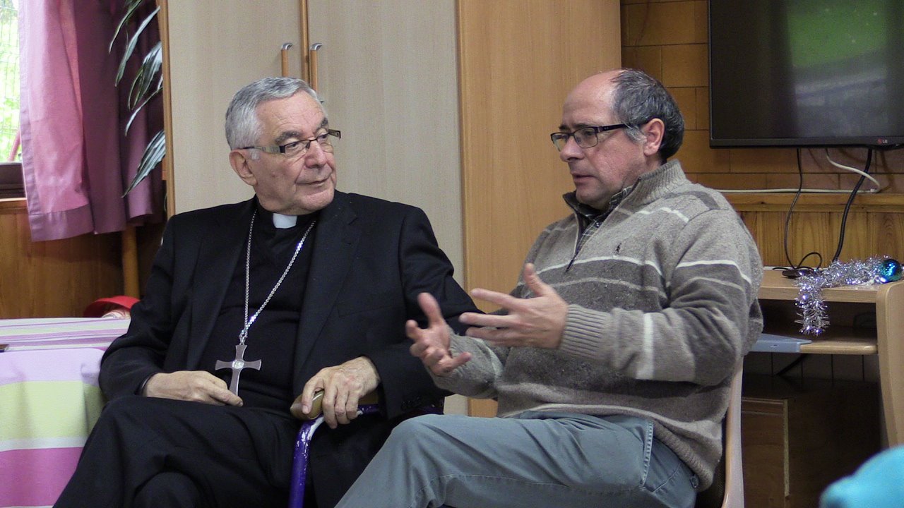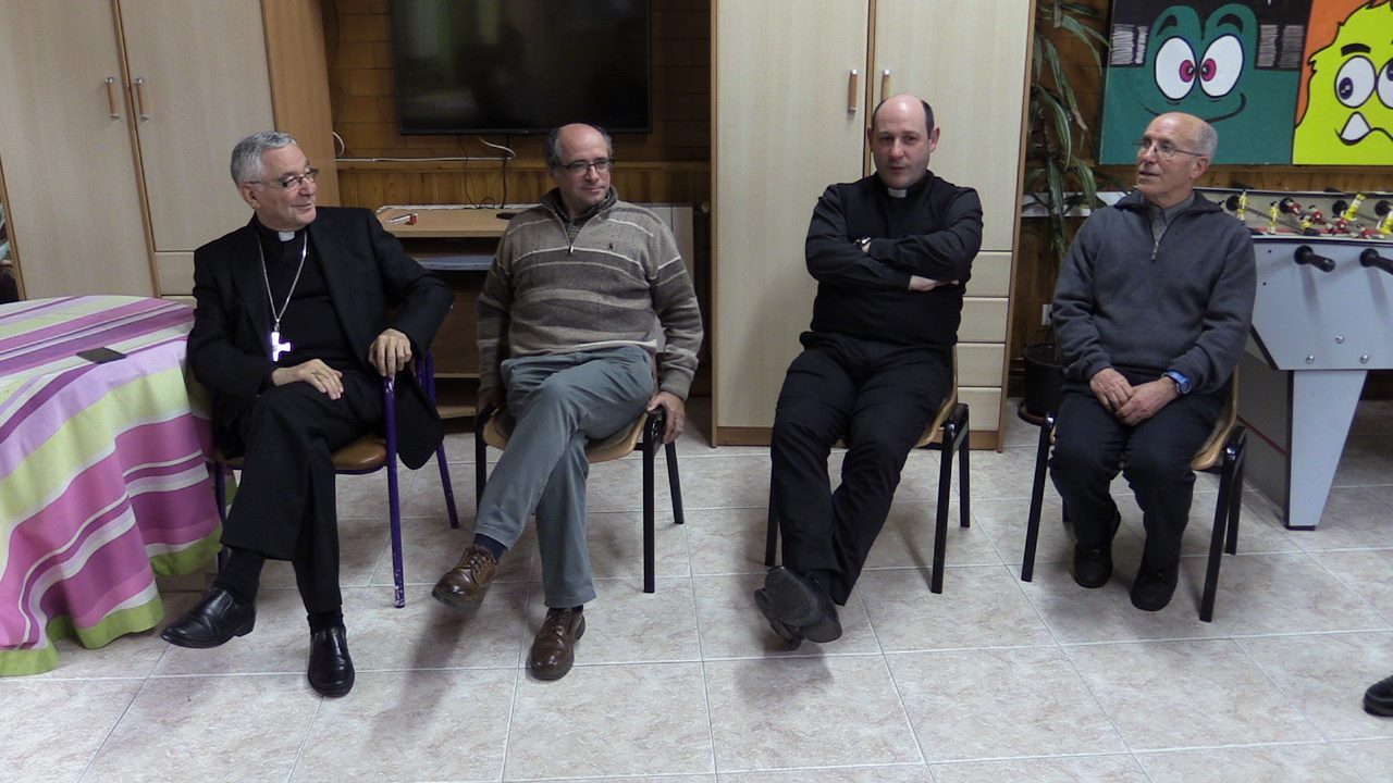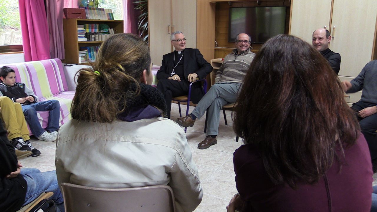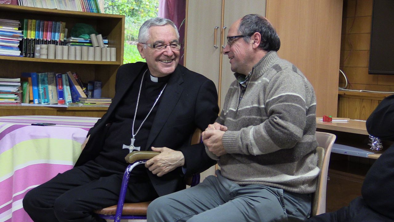 El obispo de Santander, Manuel Sánchez Monge visita la Casa de los Muchachos de Torrelavega, un centro especial de atención educativa.
