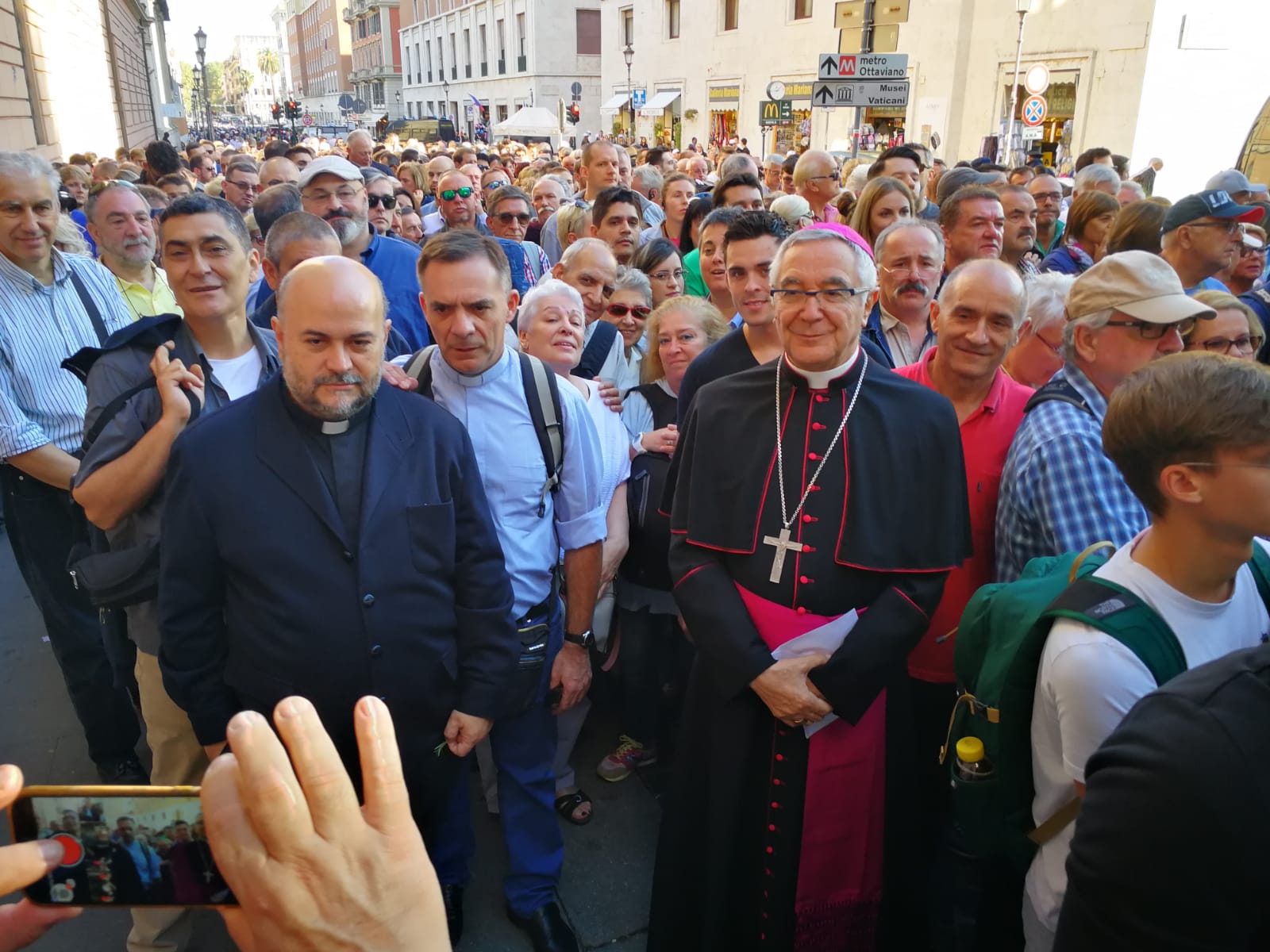 D. Manuel manifestó el doble regalo que el Papa ha hecho en esta visita a los 25 peregrinos, además de la audiencia privada: participar en la Audiencia General de los miércoles desde el lugar más privilegiado en el sagrado y la visita a San Pedro y a los Jardines.