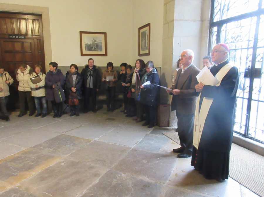 Fueron recibidos por el Delegado Diocesano Juan Cuevas y por nuestro obispo, D. Manuel Sánchez Monge, que saludó a todos los asistentes.