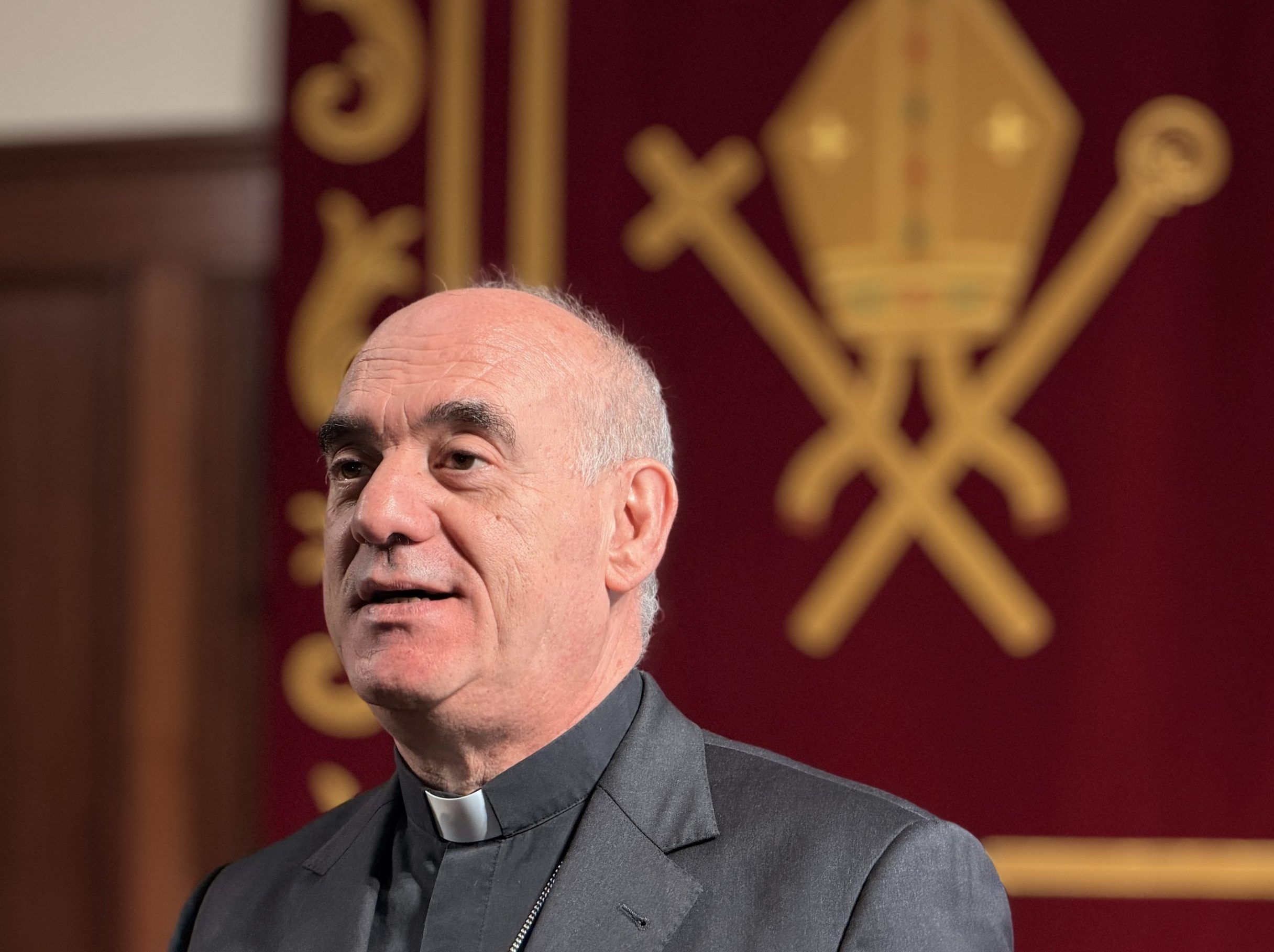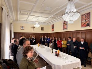 Esta mañana, buena parte de la curia diocesana (las personas que trabajan junto al Obispo en las labores diocesanas), se ha reunido en el Obispado de Santander para recibir la felicitación de D. Arturo en un encuentro fraterno. Tras la lectura de la Palabra y de la presentación y contextualización del acto por parte de D. Álvaro Asensio, Vicario General, D. Arturo ha procedido a felicitar la Navidad a los presentes. Ha destacado la importancia de estas fechas navideñas y ha reivindicado la escucha activa de la Palabra: «la Palabra es Él. Dejemos que nos diga Él la Palabra». Ha pedido también que nos dejemos amar por Él: «Lo nuestro delante de Jesús encarnado siempre será insuficiente y, a veces, hasta inútil», ha concluido. Tras esta felicitación, los asistentes han podido compartir conversación y un vino español.