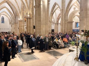 En la tarde de ayer la S.I.B. Catedral de Santander acogió la misa solemne por la Jornada Mundial del Enfermo, presidida por nuestro Obispo, D. Arturo Ros, y que coincide con la festividad de Nª Señora de Lourdes. Un marco perfecto para una emotiva celebración que congregó a cientos de fieles diocesanos, muchos de los cuales pertenecen a la Hospitalidad diocesana de Lourdes o participan en las actividades de la Delegación de Pastoral de la Salud.