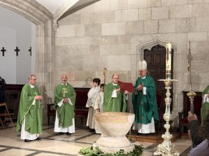 El aforo de la Catedral, prácticamente al completo, fue ya desde el inicio uno de los síntomas del éxito de una jornada que ha convocado a decenas de familias de nuestra diócesis. En la Eucaristía, presidida por nuestro Obispo, D. Arturo, han participado miembros de la delegación, que se han mostrado en todo momento emocionados por poder ser parte de esta celebración.