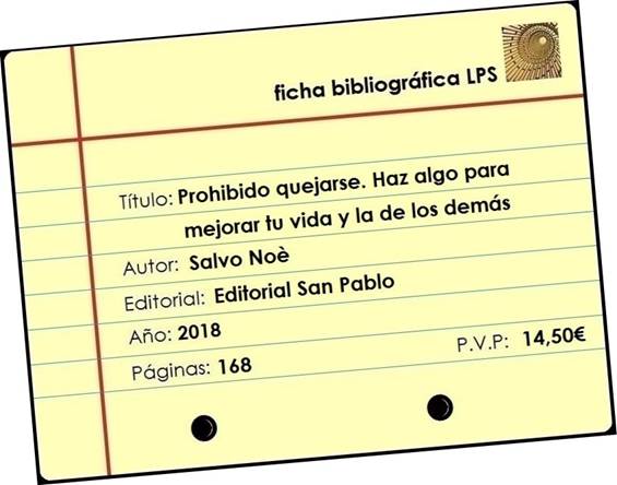 “Prohibido quejarse. Haz algo para mejorar tu vida y la de los demás”, Salvo Noé (Editorial San Pablo)