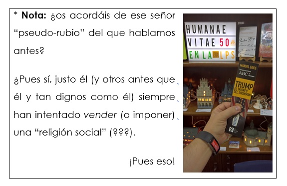 * Nota: ¿os acordáis de ese señor “pseudo-rubio” del que hablamos antes? Pues sí, justo él (y otros antes que él y tan dignos como él) siempre han intentado vender (o imponer) una “religión social” (???). ¡Pues eso!