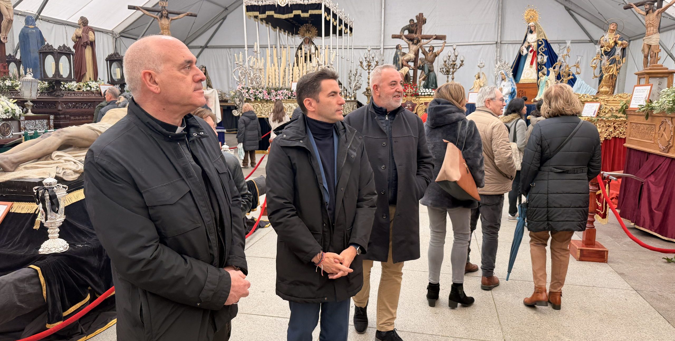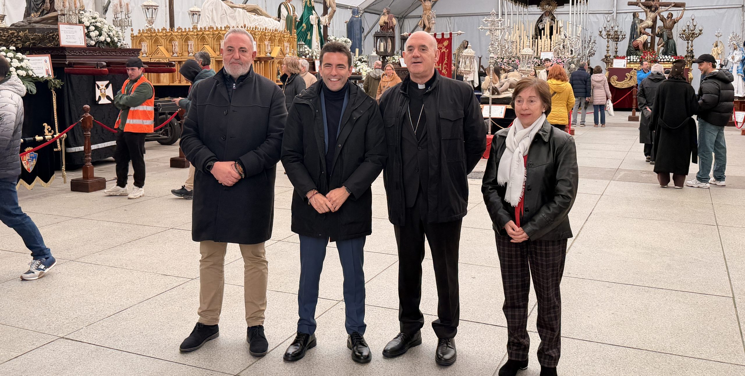 Este mediodía, el Obispo diocesano, monseñor Arturo Ros, ha acompañado al Delegado del Gobierno en Cantabria, Pedro Casares, en su visita a la carpa de exposición de pasos de Semana Santa, ubicada en la plaza Porticada de Santander. Junto a Jordi Rivero, presidente de la Junta de Cofradías Penitenciales de Santander, y acompañados por su vicepresidenta, María Jesús Sisniega, han recorrido la exposición y contemplado la belleza de los pasos que estos días saldrán engalanados a las calles de la capital.