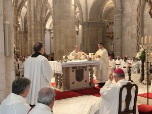 Nuestro Obispo ha comenzado su homilía mostrando su alegría por estar reunidos en esta celebración y con una bienvenida afectuosa a todos los presentes, así como a los tres Obispos que le acompañaban en el altar: D. Jesús Pulido, Obispo de Coria-Cáceres; D. Joan Enric Vives i Sicilia, Arzobispo-Obispo emérito de Urgell y D. Manuel Sánchez Monge, Obispo emérito de nuestra diócesis de Santander.