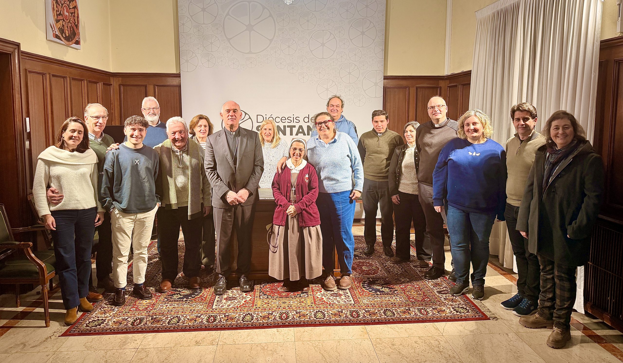 En la reunión han participado todas las personas convocadas por D. Arturo y que formarán parte de este organismo. Son, en su mayoría, personas que acudieron al Congreso de Vocaciones y forman parte de diferentes colectivos y delegaciones de nuestra diócesis: sacerdotes, laicos; matrimonios, jóvenes y profesionales de distintos ámbitos son solo algunos de ellos. Durante los algo más de 60 minutos que duró este encuentro de toma de contacto, se compartieron un buen número de ideas, entre las que destacan el, en palabras de nuestro Obispo, el «interesante y significativo reto de hacer ver al pueblo fiel que todos estamos llamados a desarrollar la vocación a la que somos llamados por el Señor». Para ello y para el buen desarrollo de la labor del servicio, «tenemos cosas en las que apoyarnos para avanzar que nos ayudarán», ha afirmado D. Arturo.