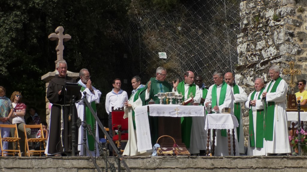 El obispo de Santander Mons Manuel Sánchez Monge, ha celebrado la eucaristía ante los numerosos fieles que se hallaban en la explanada del monasterio. Para el obispo Monge, existen dos maneras de entender la vida la de Dios o la de los hombres, la lógica de Dios o la lógica de los hombres y ambas no se pueden compaginar. El prelado también explicó qué es la cruz del cristiano y cual es la importancia del fragmento de la cruz que se conserva en Santo Toribio.