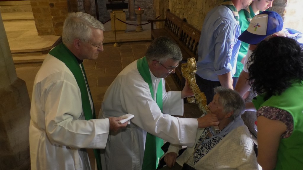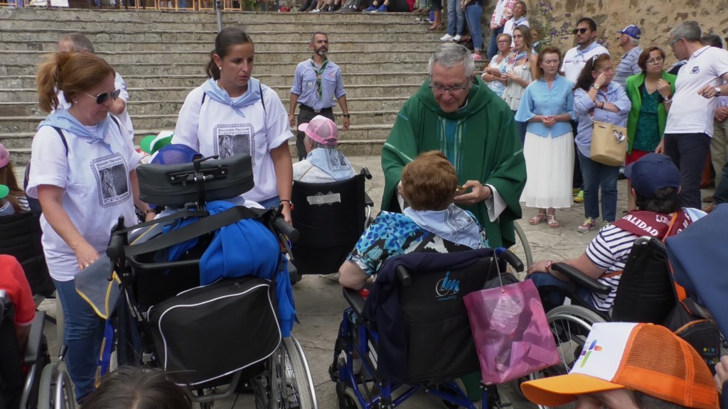 La eucaristía del peregrino que se celebra a las 12:00 y resto de servicios religiosos y culturales se han adaptado con ayuda de numerosos voluntarios de la hospitalidad y un grupo de scouts de Asturias para facilitar la estancia de los numerosos enfermos que han acudido al Jubileo Lebaniego.