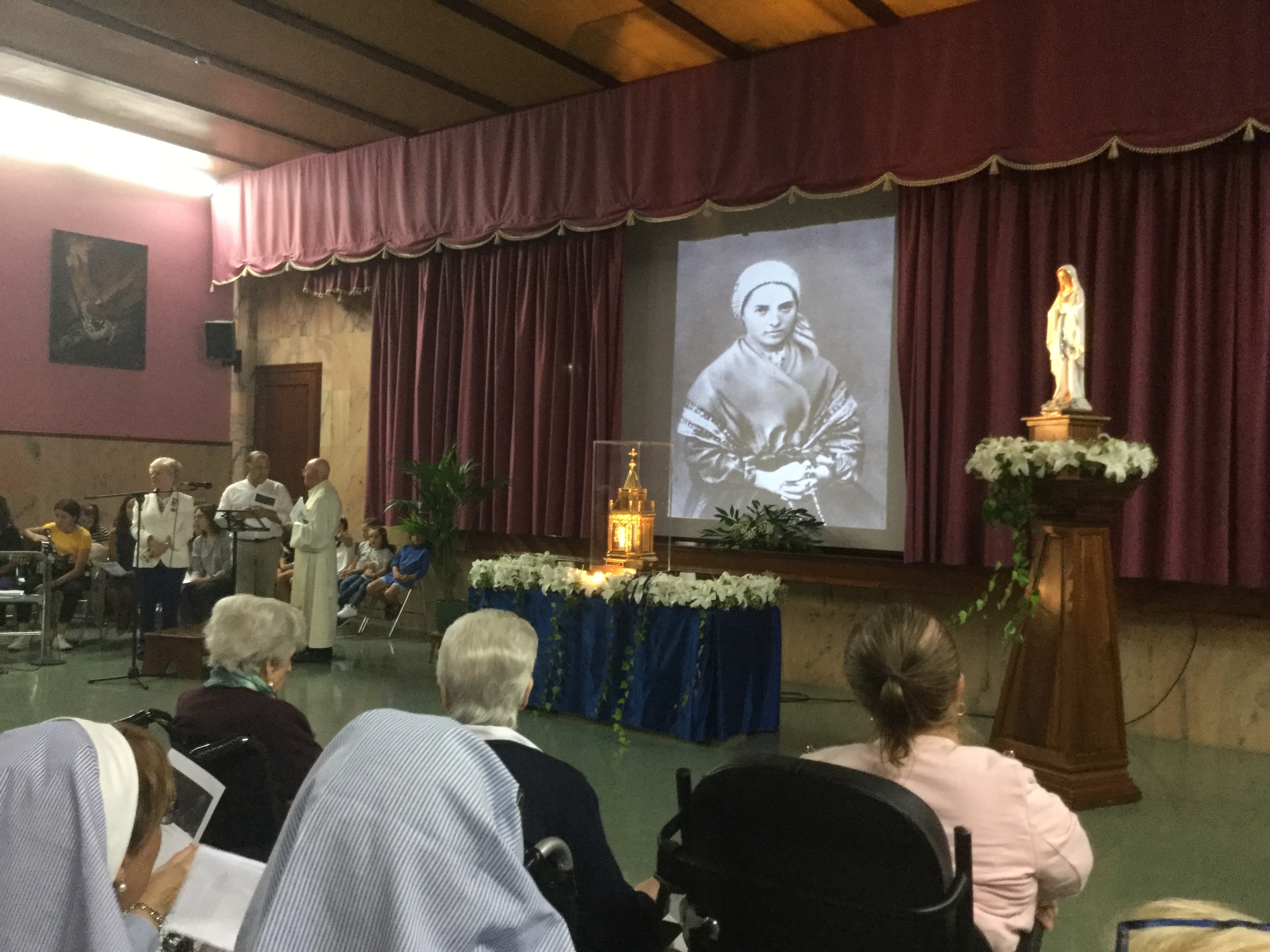 El jueves a media tardes, antes de ponerse rumbo a la Parroquia de San José Obrero, la reliquia de Santa Bernadette hizo una visita especial para llevar el consuelo a tantos residentes, que en el Asilo de San José, viven su enfermedad con confianza en Dios. A ellos Bernadette les acercó la mirada maternal de la Virgen, Ntra. Sra. de Lourdes, a la que muchos de los residentes peregrinan anualmente con nuestra peregrinación diocesana en la semana de Pascua.