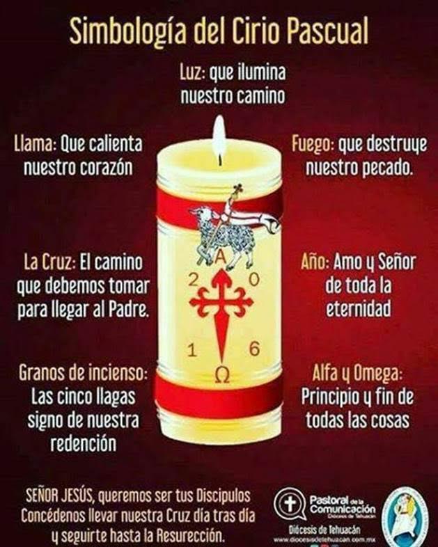 Al Cirio Pascual se le incrusta en la cera cinco granos de incienso, simbolizando las cinco llagas santas y gloriosas del Salvador en la Cruz.